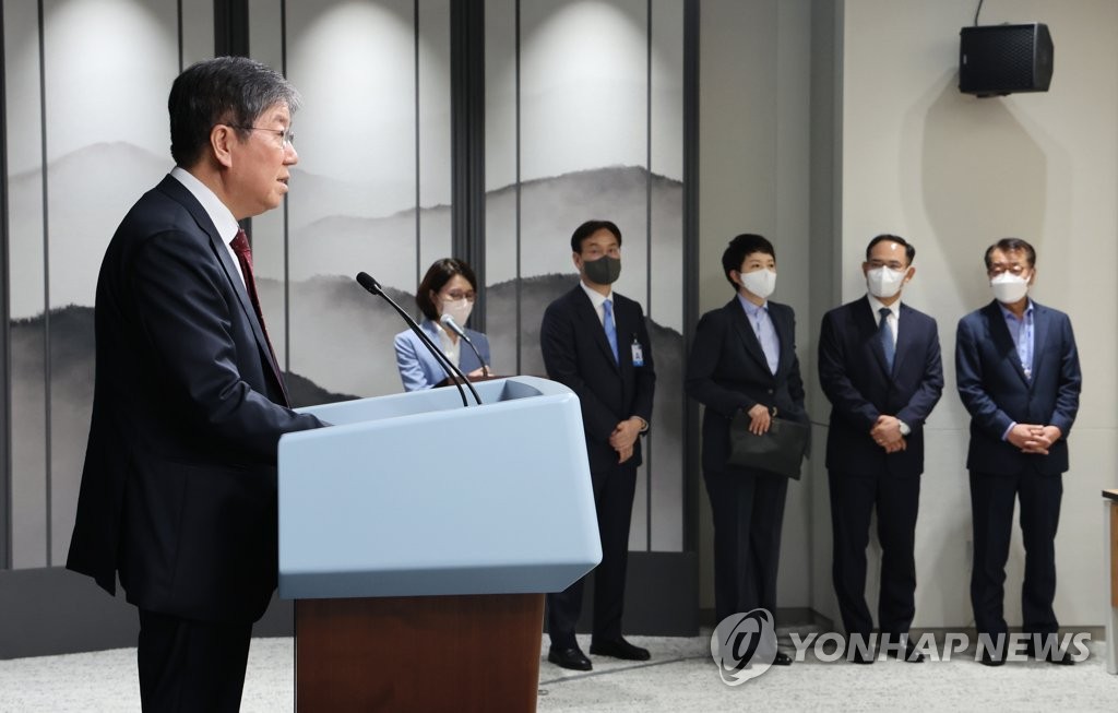왼쪽 두번째부터 이관섭 정책기획수석, 김은혜 신임 홍보수석, 임종득 국가안보실 2차장이 배석하고 있다. 2022.8.21 jeong@yna.co.kr