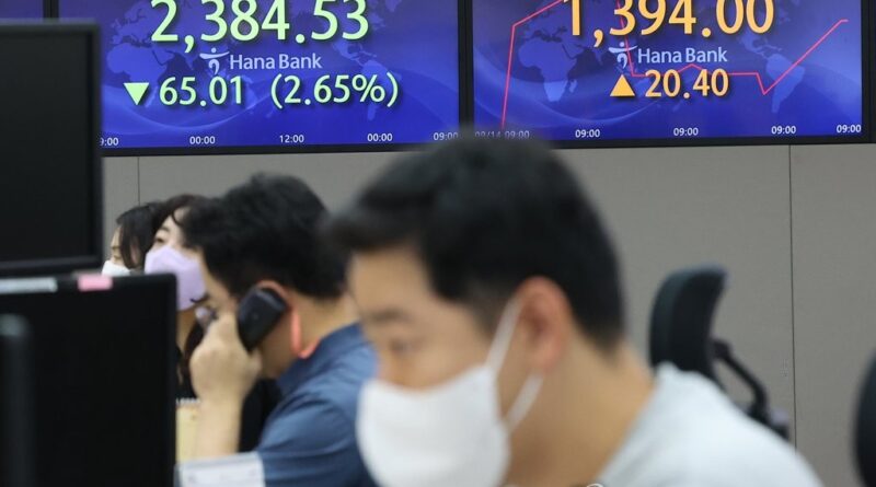 지수는 전장보다 59.07포인트(2.41%) 낮은 2,390.47로 개장해 약세 흐름을 이어가고 있다. 개장 직후에는 2,381.50까지 낙폭을 키웠다.