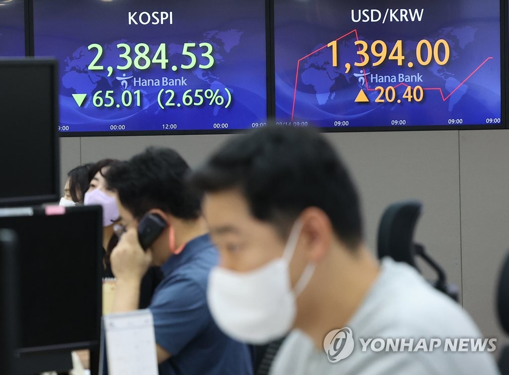 미국 물가 충격…코스피 2,400 붕괴·환율 1,400원 근접(종합)
