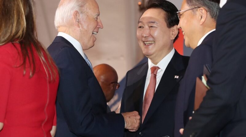 尹대통령, 바이든과 48초 ‘스탠딩 환담’…정식회담은 불발된 듯