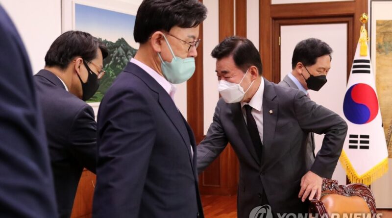 국민의힘 주호영·더불어민주당 박홍근 원내대표와 양당 원내수석부대표는 이날 오전 11시부터 국회의장실에서 김진표 의장 중재로 회동했다.