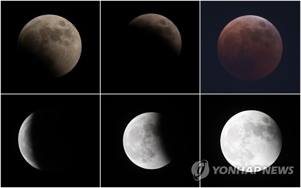 국립과천과학관과 한국천문연구원에 따르면 이날 우리나라에선 오후 7시 16분부터 8시 41분까지 지구 그림자가 달을 가리는 개기월식(개기식)을 볼 수 있었다.
