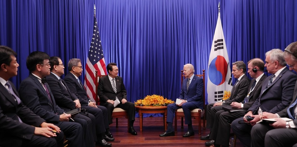 한미정상회담은 바이든 대통령의 지난 5월 방한 이후 6개월 만이다. 두 정상이 아세안(ASEAN·동남아국가연합) 관련 정상회의가 개최된 프놈펜을 나란히 찾으면서 성사됐다.