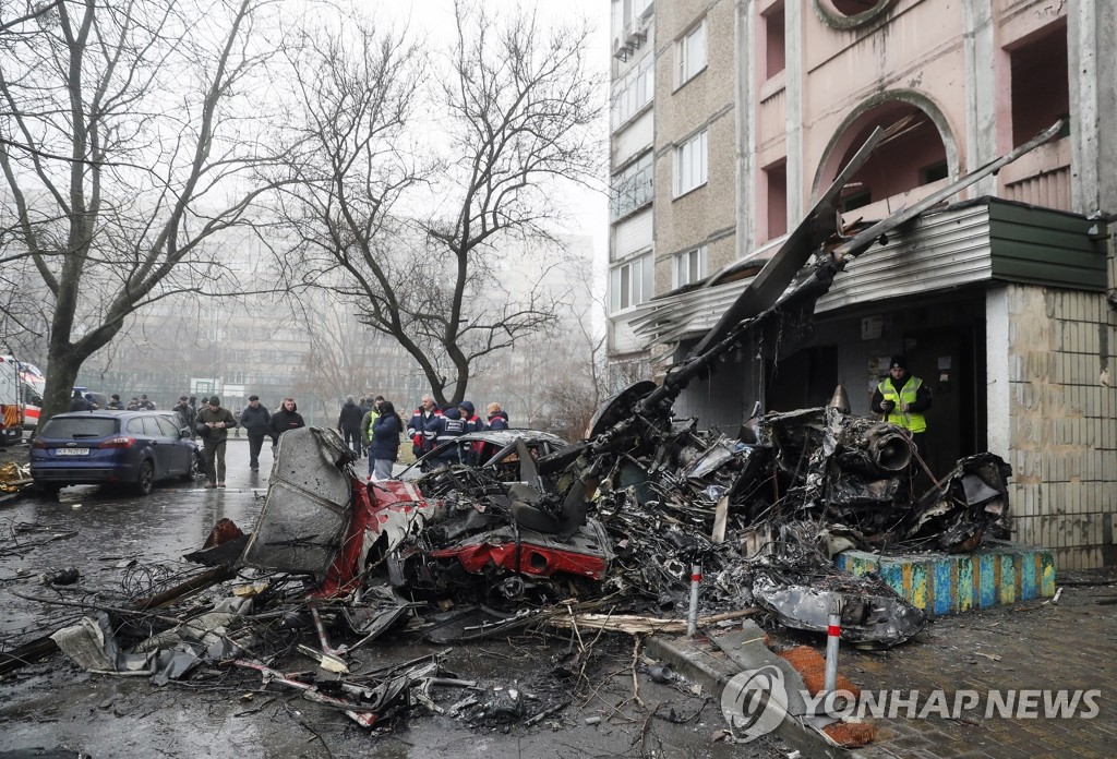 우크라이나 국가 비상 서비스와 대통령실은 이날 오전 키이우 동북쪽 외곽의 브로바리 지역에 국가 비상 서비스 소속 헬기가 추락해 14명이 숨지고 25명이 다쳤다고 밝혔다.