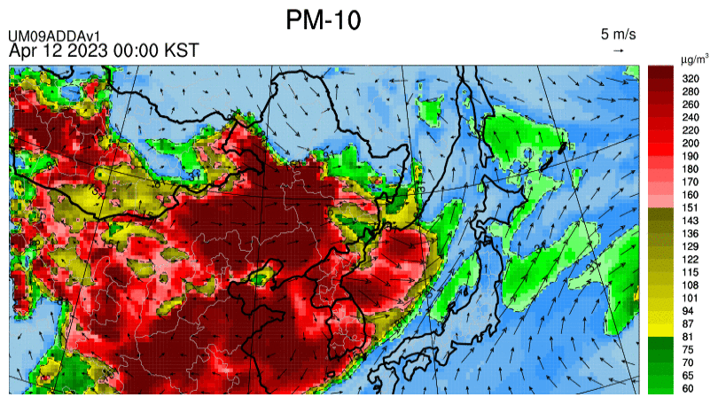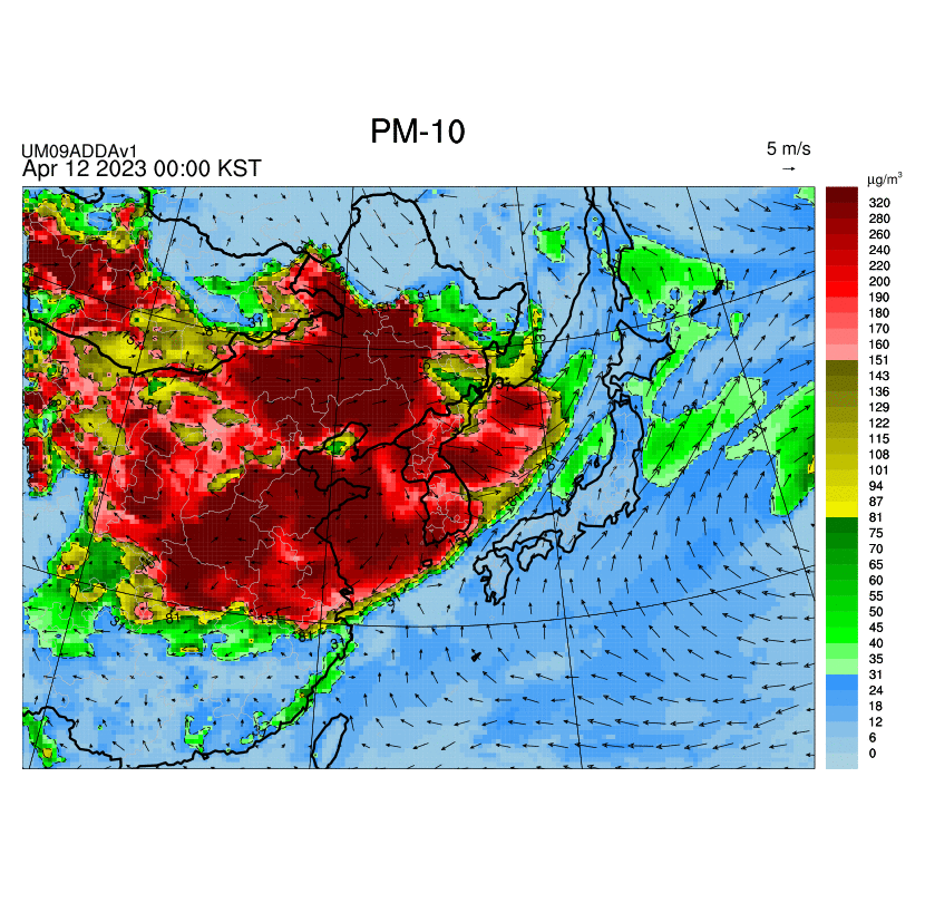 내몽골고원과 고비사막 등에서 발원한 황사가 북서풍을 타고 국내로 유입돼 11일 전국에서 관측되고 있다. 시도별 미세먼지(PM10) 농도(1시간 평균)를 보면 오전 7시 현재 울산 494㎍/㎥, 광주 459㎍/㎥, 제주 438㎍/㎥, 전남 408㎍/㎥ 등 전 시도가 ‘매우 나쁨'(151㎍/㎥ 이상) 수준을 훌쩍 넘는다. 서울은 오전 7시 미세먼지 농도가 192㎍/㎥이다.