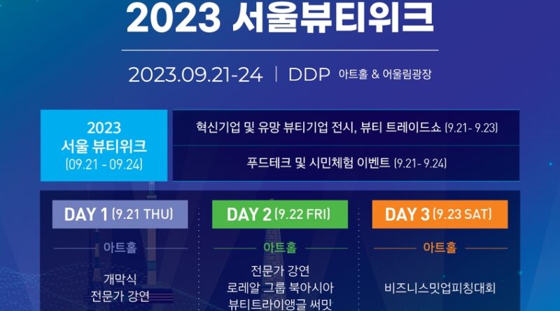 9월 21일부터 24일까지 DDP에서 진행되는 2023 서울뷰티위크 기간 중 21일부터 22일까지는 글로벌 기업이나 우수 스타트업 등 뷰티산업계 인사들이 행사장을 찾아 강연할 예정이다.