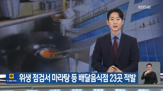 식품의약품안전처는 마라탕, 양꼬치, 훠궈 등을 조리하여 배달하는 음식점과 커피를 조리‧판매하는 무인카페 총 4,056개소에 대해 2월 19일부터 23일까지 17개 지방자치단체와 함께 집중 점검을 실시한 결과, 「식품위생법」, 「식품 등의 표시‧광고에 관한 법률」 등을 위반한 23곳(0.6%)을 적발해 관할 지방자치단체에 행정처분을 요청했다고 밝혔다.
