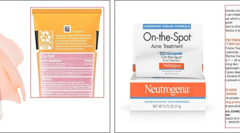 <화장품으로 여겨지나 의약품이기도 한 자외선 차단제와 여드름 크림 제품의 예>