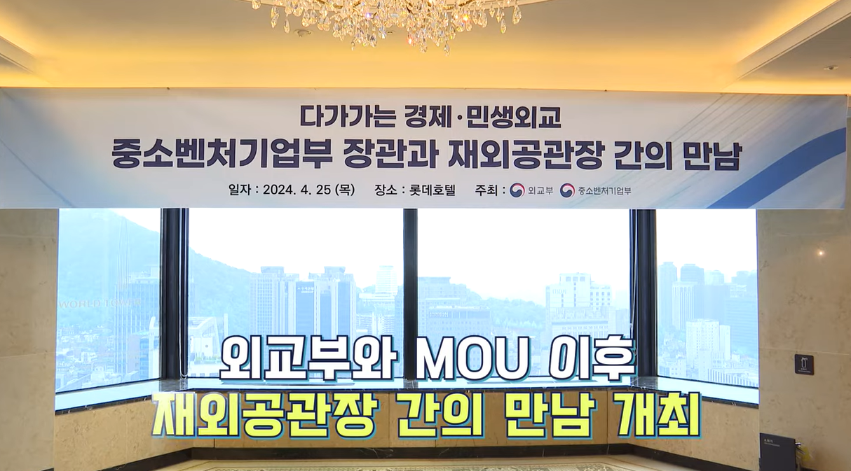 오늘 행사는 지난 4월1일 체결된 중소벤처기업부와 외교부 간 업무협약*의 후속조치로, 경제·민생외교의 최일선인 재외공관과 중소벤처기업부가 협력해 중소기업·창업기업(스타트업)의 해외진출과 신시장 개척을 지원하는 방안을 논의하고자 마련되었다.