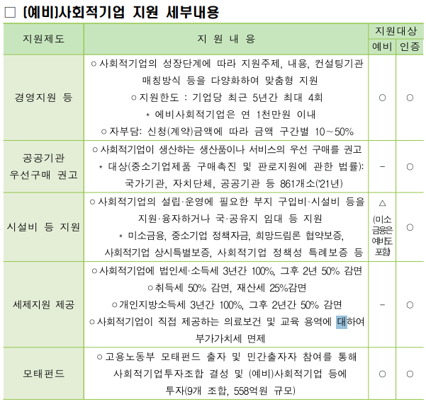 보건복지부는 2012년부터 이 제도를 도입하여 지난 2023년까지 216개 기업을 보건복지형 예비사회적기업으로 지정했으며, 그 중 55개 기업이 사회적 기업으로 인증을 받는 데에 성공했다.