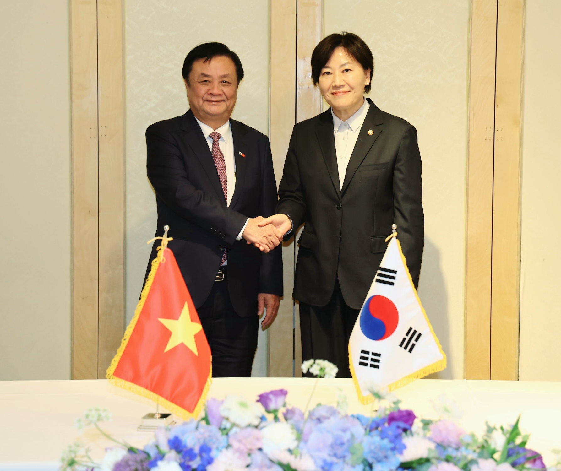 송미령 농림축산식품부 장관이 7월 2일 서울에서 베트남 농업농촌개발부 장관 레 밍 호안과 회담하여, 한국 기업이 베트남 시장에 더 많이 진출하도록 협조를 요청했다.