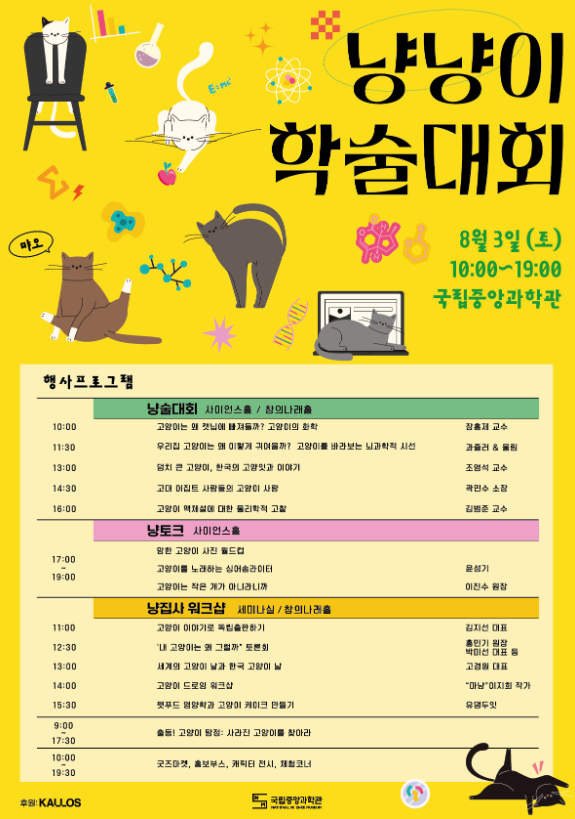 국립중앙과학관(관장 권석민)은 세계 고양이 날을 맞아 ‘냥냥이 학술대회’를 오는 8월 3일 하루 동안 개최한다고 밝혔다.