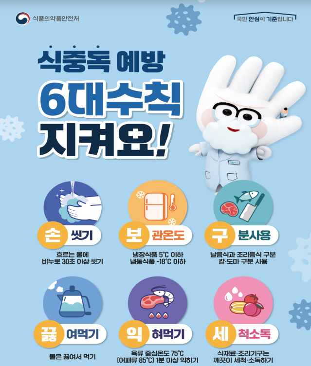 특히 이번 장마철 집중호우로 인한 수해와 장마 이후 본격적인 무더위로 식중독 위험이 높아진 상황에서, 식재료 관리부터 조리된 음식의 보관·관리, 식품용 기구·용기의 살균·소독에 더욱 신경 써야 한다고 강조했다.