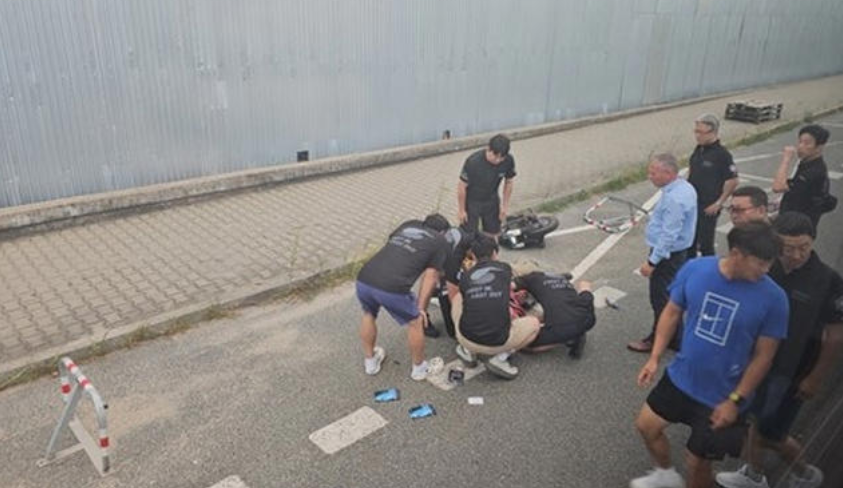 당시 외발 전동휠을 타고 이동하던 한 중년 여성이 구조물에 걸려 심하게 넘어지며 우측 팔꿈치(골절)와 양손바닥에 부상을 입고 도로에 쓰러졌다. 충격으로 한동안 미동조차 없어 현장은 순식간에 긴장감으로 가득 찼다.