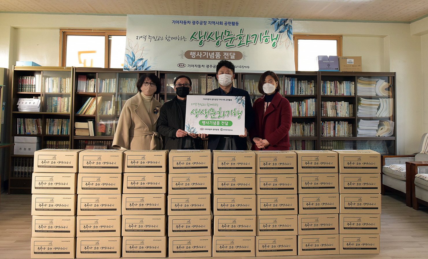 기아차는 이날 서구 쌍촌동 광명하이츠 아파트에서 물품 전달행사를 진행했다.