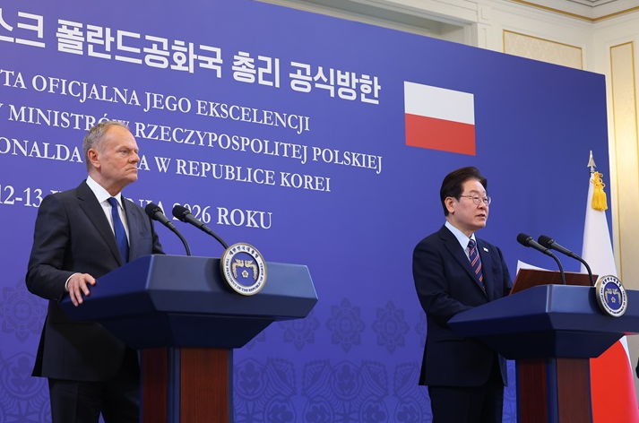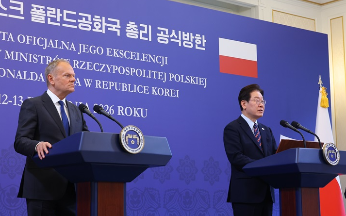 이재명 대통령은 13일 청와대에서 도날드 투스크 폴란드 총리와 정상회담을 갖고 공동 언론발표를 통해 양국 협력 확대 방안을 발표했다. 양 정상은 글로벌 공급망 불안과 중동 정세 악화 등 국제 환경 변화에 대응하기 위해 협력을 강화하기로 뜻을 모았다.