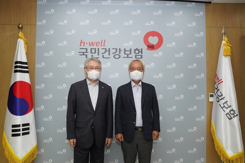 ![김용익 국민건강보험공단 이사장(왼쪽)과 문성현 경제사회노동위원회 위원장(오른쪽)이 14일 오전 강원 원주 공단 본부에서 만난 모습 [국민건강보험공단 제공. 재판매 및 DB 금지]](https://vmg.yonhapnews.co.kr/etc/inner/KR/2021/07/14/AKR20210714138300530_01_i.jpg)